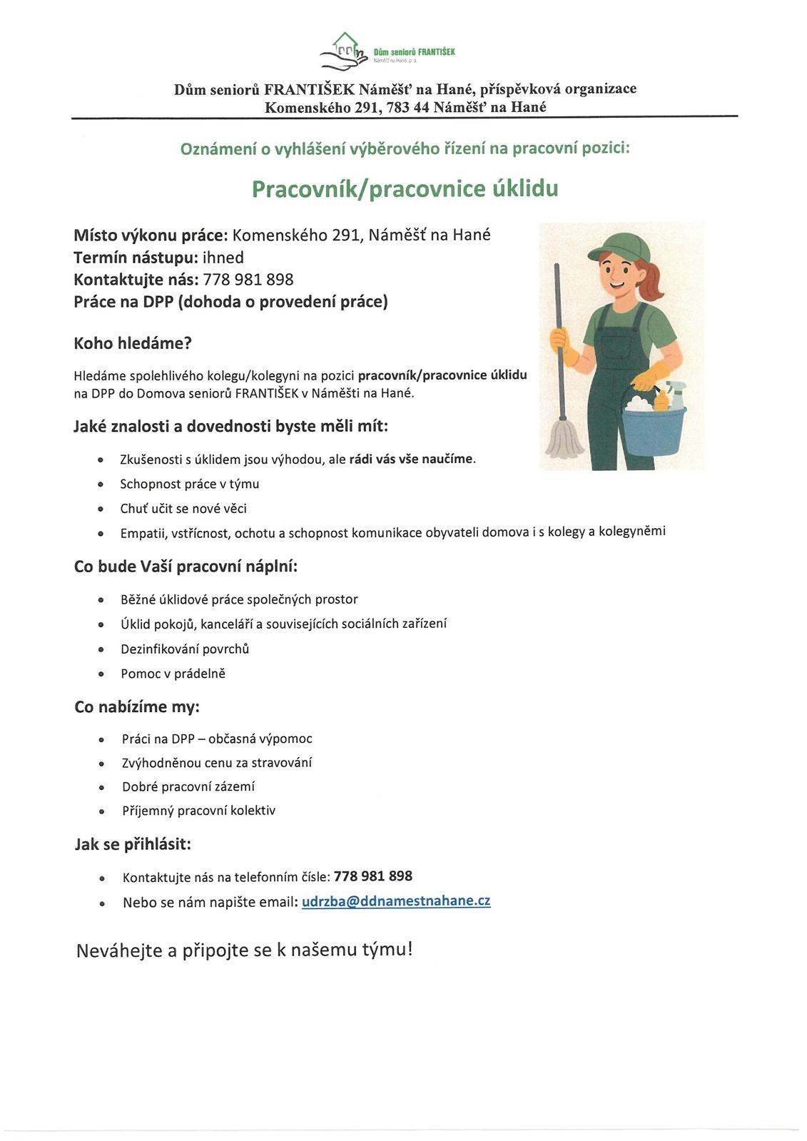 Úvod > Život v obci > Aktuality > Dům seniorů František - nabídka práce