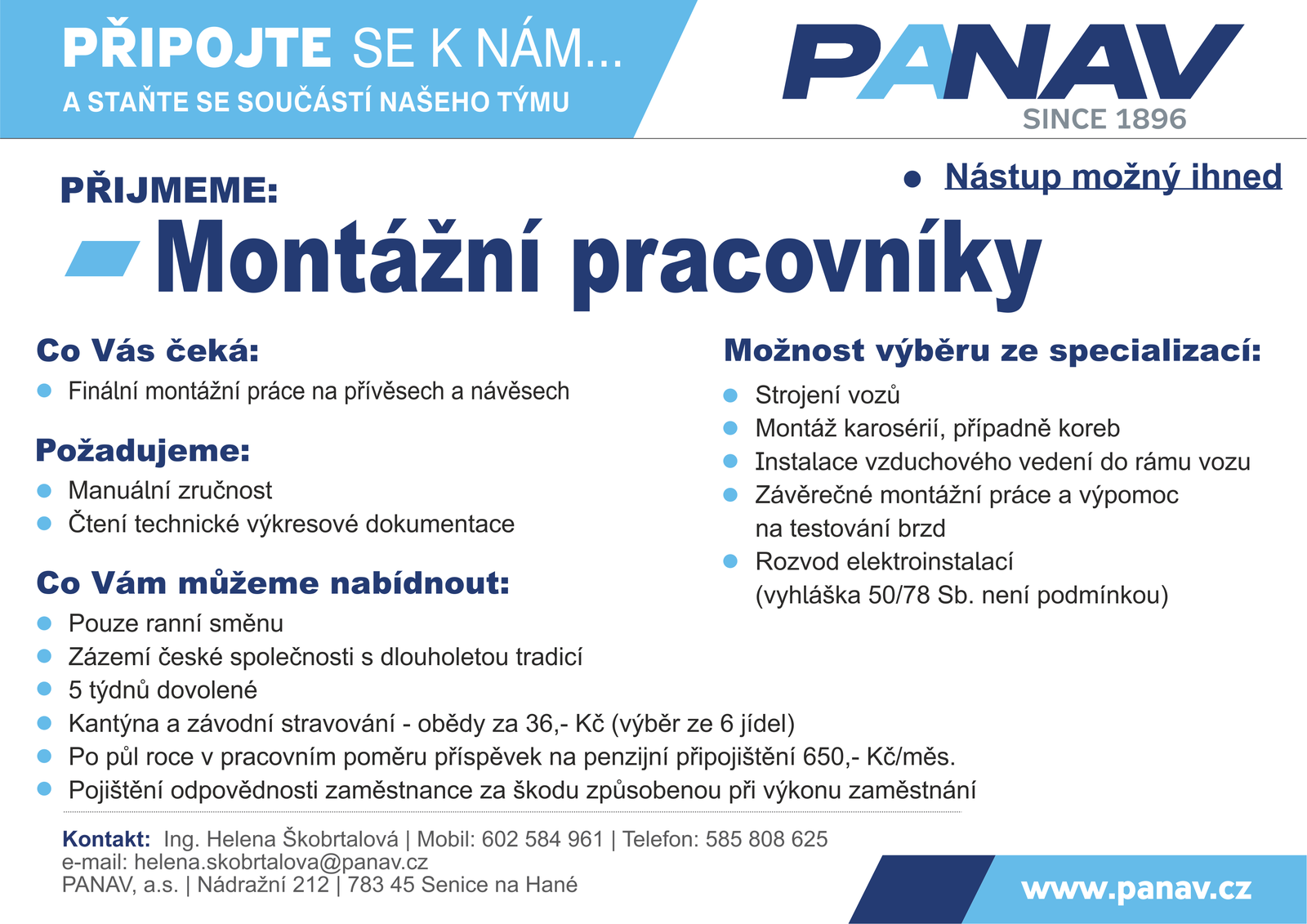Úvod > Život v obci > Aktuality > PANAV Senice na Hané – výrobce přívěsů a návěsů NABÍDKA PRÁCE