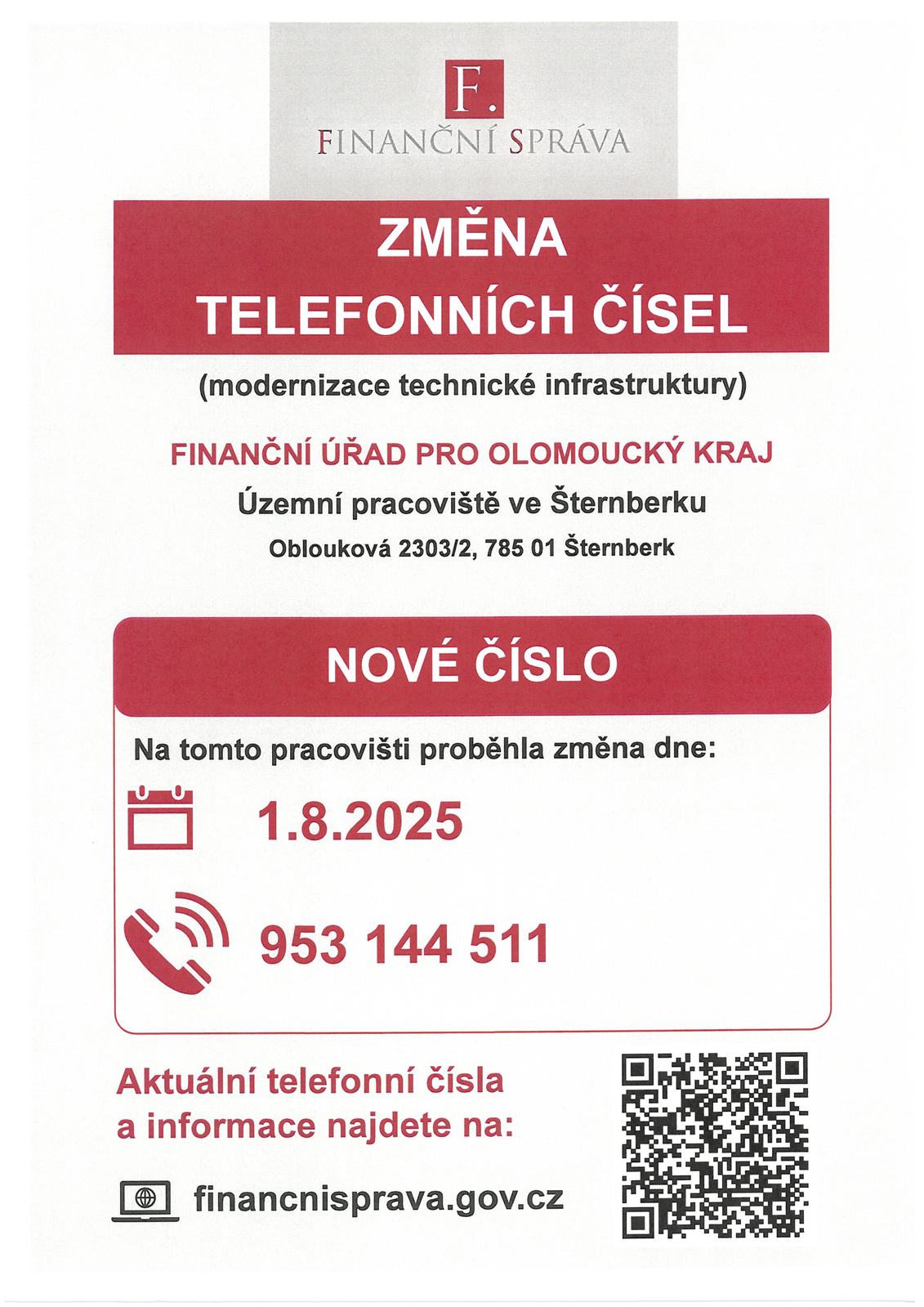 Úvod > Život v obci > Aktuality > Změna telefonních čísel - finanční úřad Olomouc, Šternberk